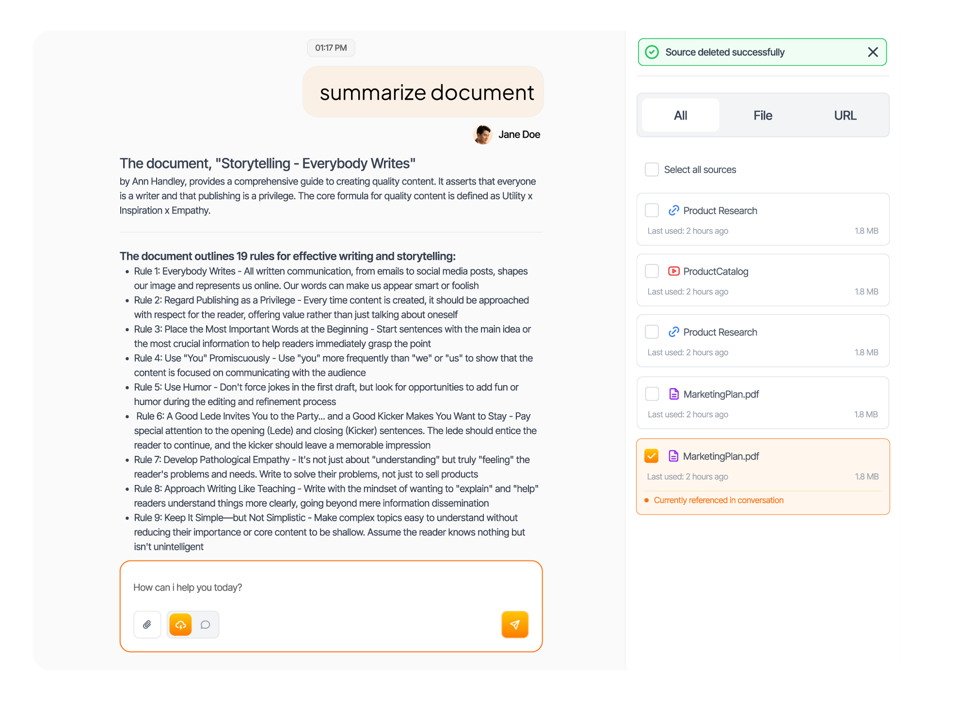 อัปโหลดเอกสาร สเปรดชีต และงานนำเสนอทั้งหมดของบริษัทคุณได้อย่างง่ายดาย เพื่อสอน Saifa ให้รู้ทุกอย่างเกี่ยวกับธุรกิจของคุณ