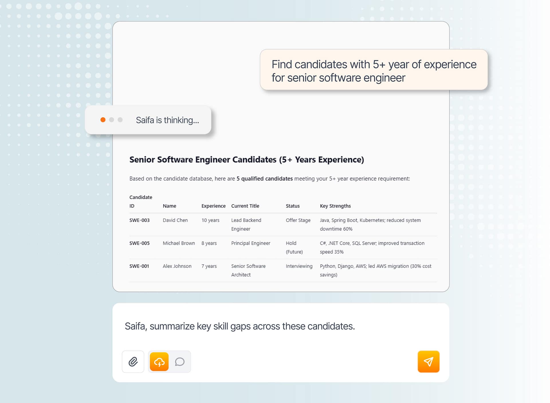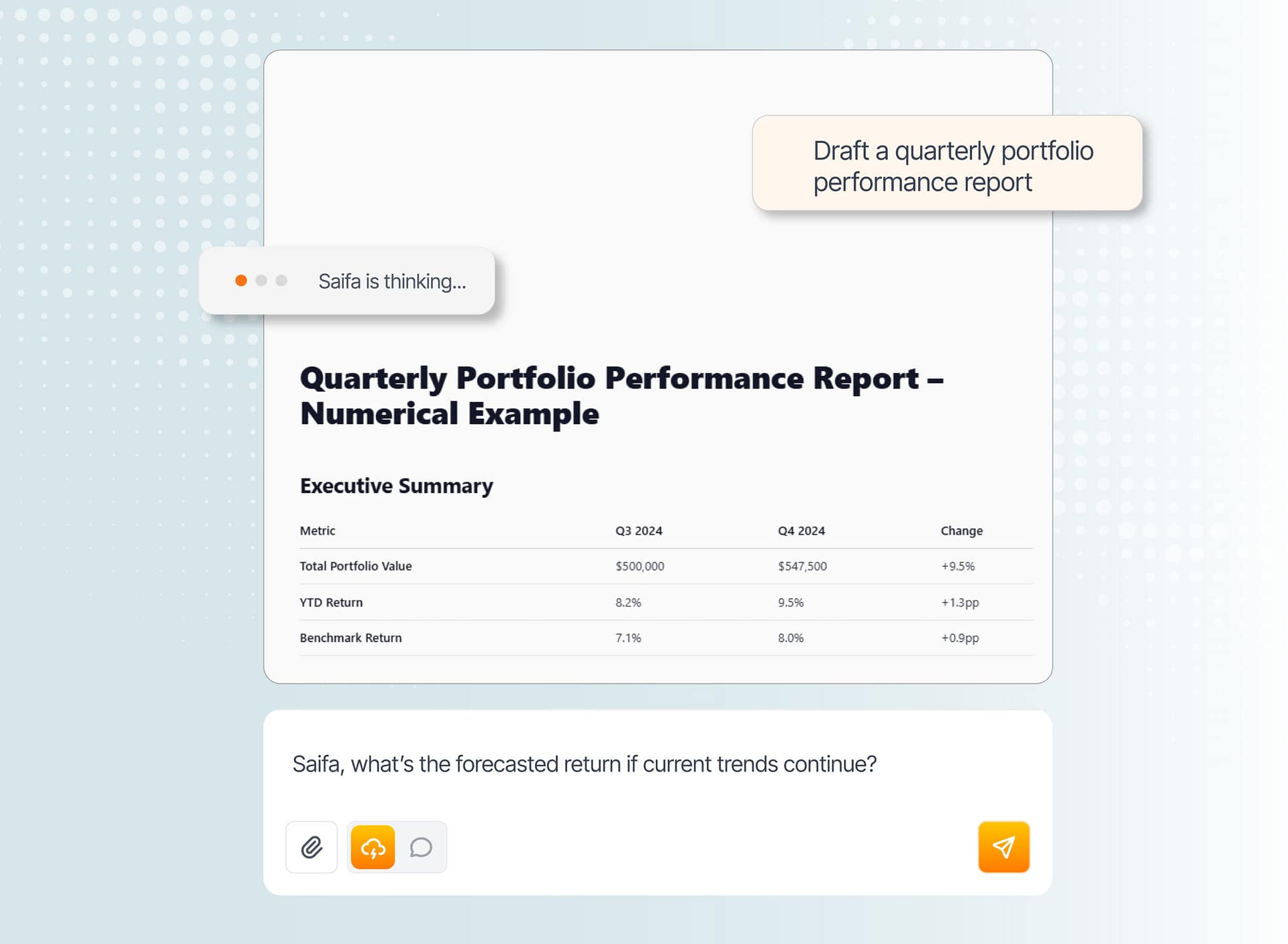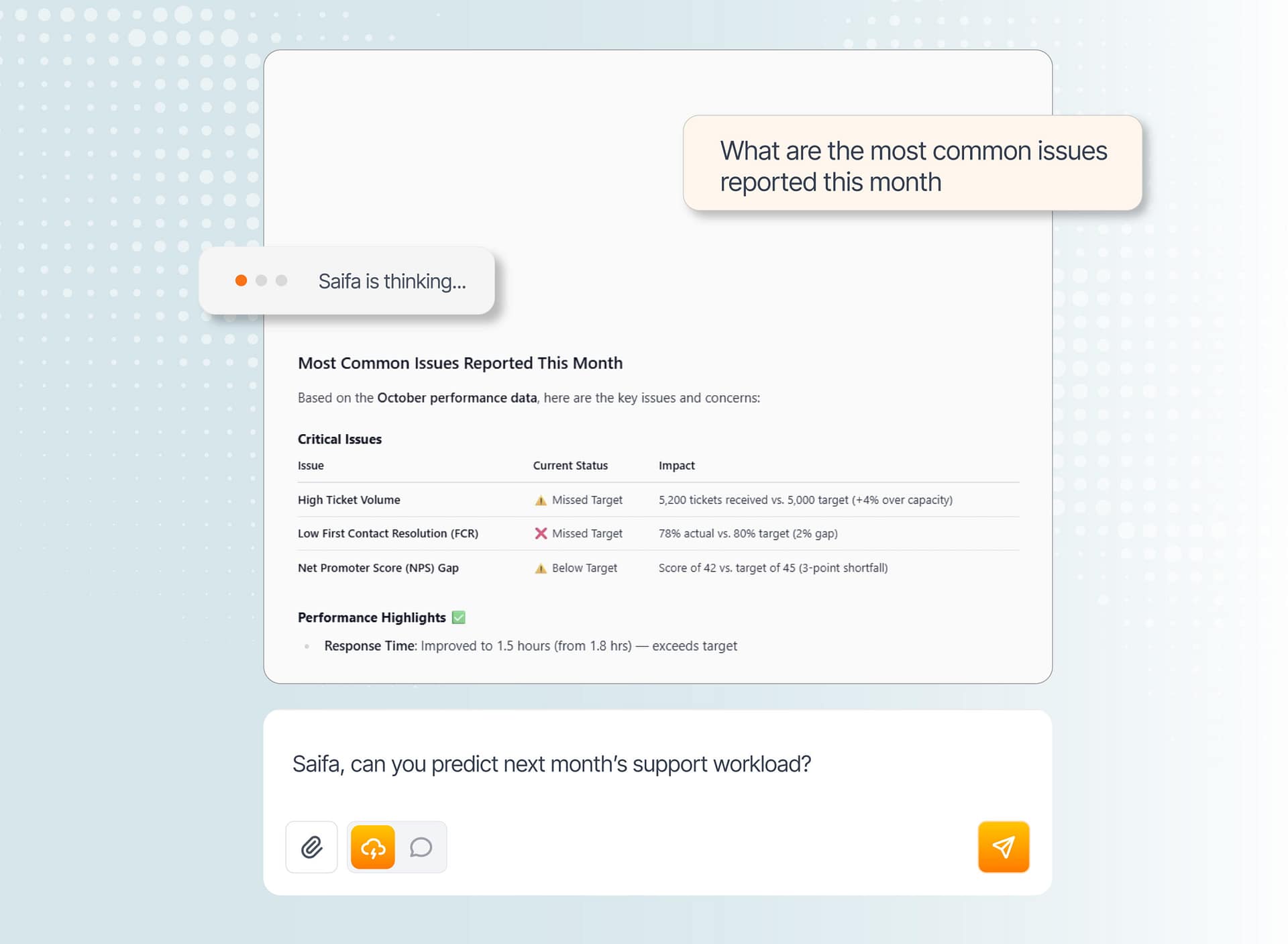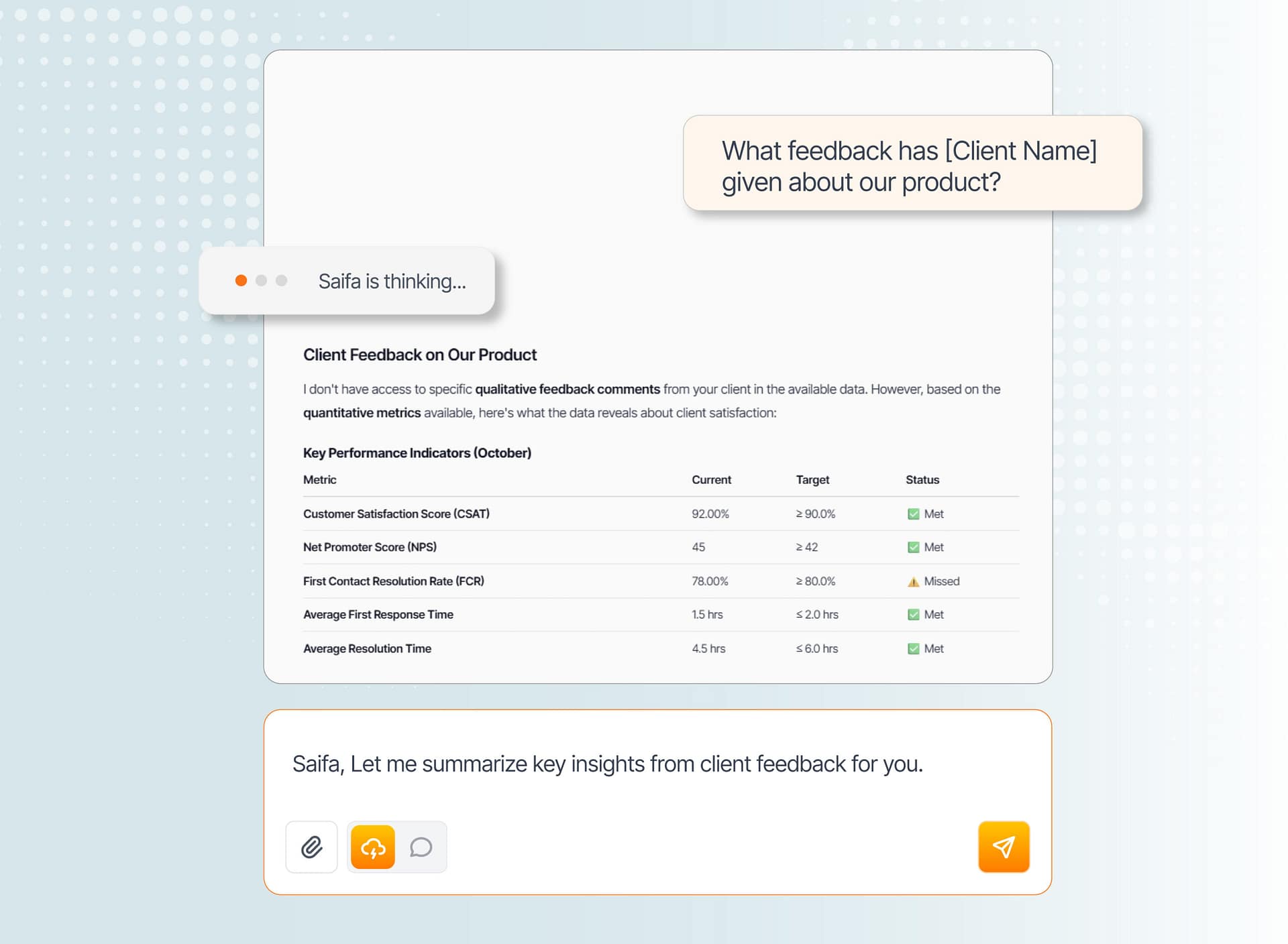 Saifa AI isn’t just a generic tool. It’s a specialist that learns and understands your company inside and out, providing relevant and accurate insights tailored to your business.